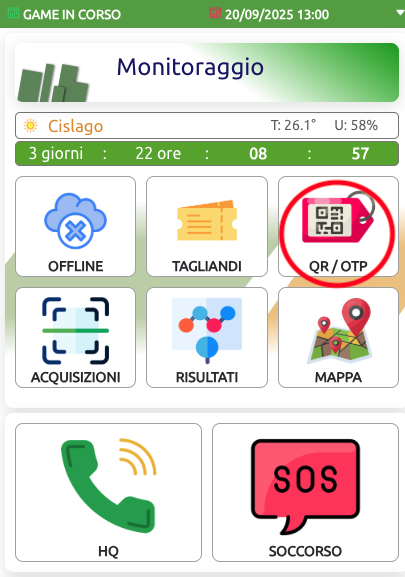 Mentre il QR del team rimane invariato durante la gara (quindi si può anche conservare uno screenshot del qr generato dall'app), il codice OTP cambia ogni 60 secondi, sostanzialmente è diverso per ogni referto. Viene mostrata di seguito la schermata in app di quello che vede il team in modalità firma, accedendo dalla dashboard nella sezione QR / OTP.